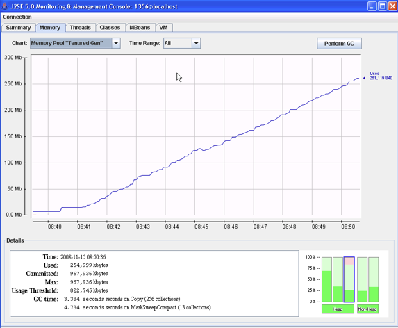 Netbeans ships with a robust profiler which is easy to use and minimally invasive. You don’t even have to be using Netbeans as your development environment (I use IntelliJ) or even be on the same machine running the VM you want to profile. Thus you can troubleshoot a production environment from afar. Yesterday I figured out how to profile a java process running as a Windows’ service via The Java Service Wrapper. The instructions below assume Java 5 on both Mac and the windows machine as well as Netbeans 6.5+.
