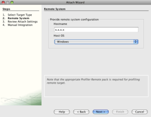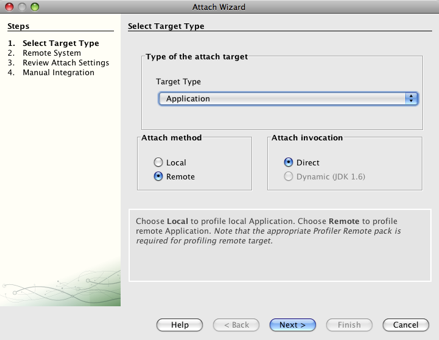 This will bring up the Attach Wizard. Pick the target type as an Application and the attach method as being remote.